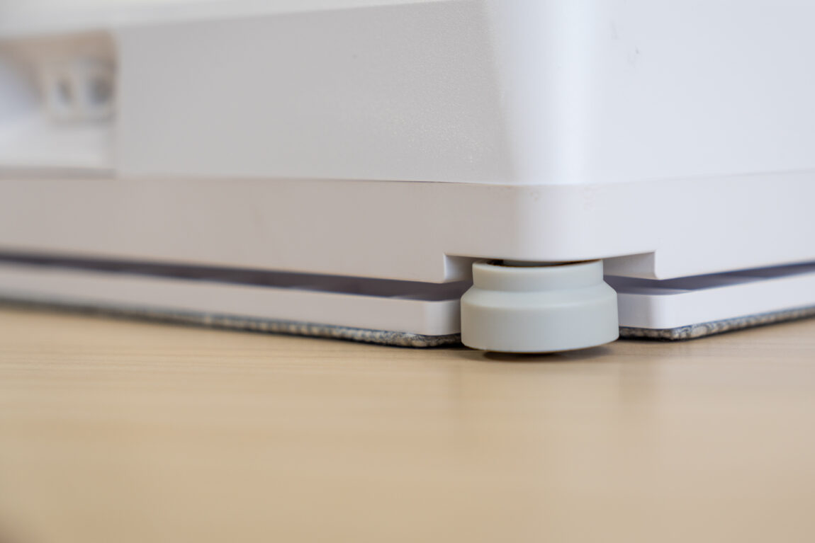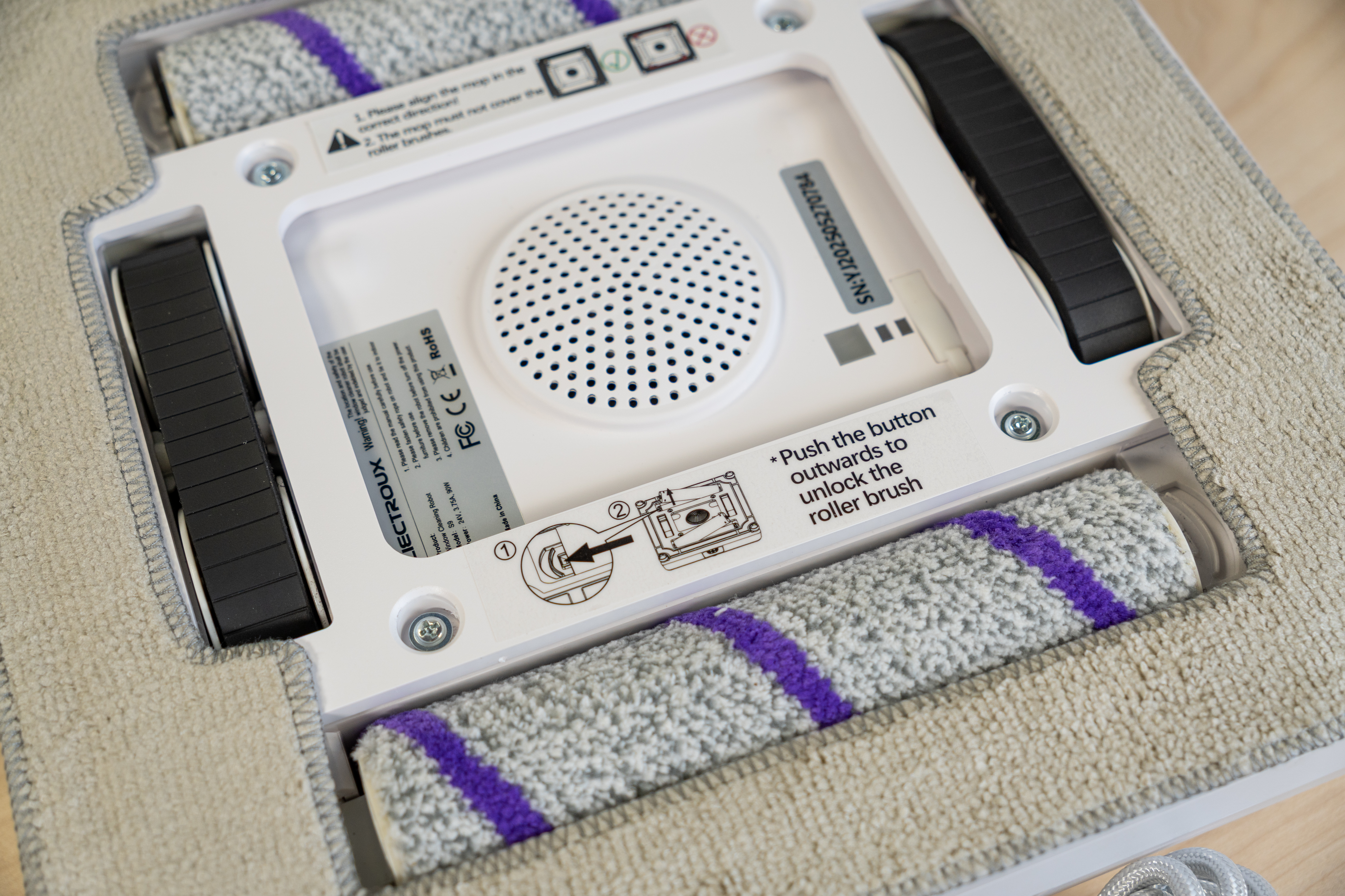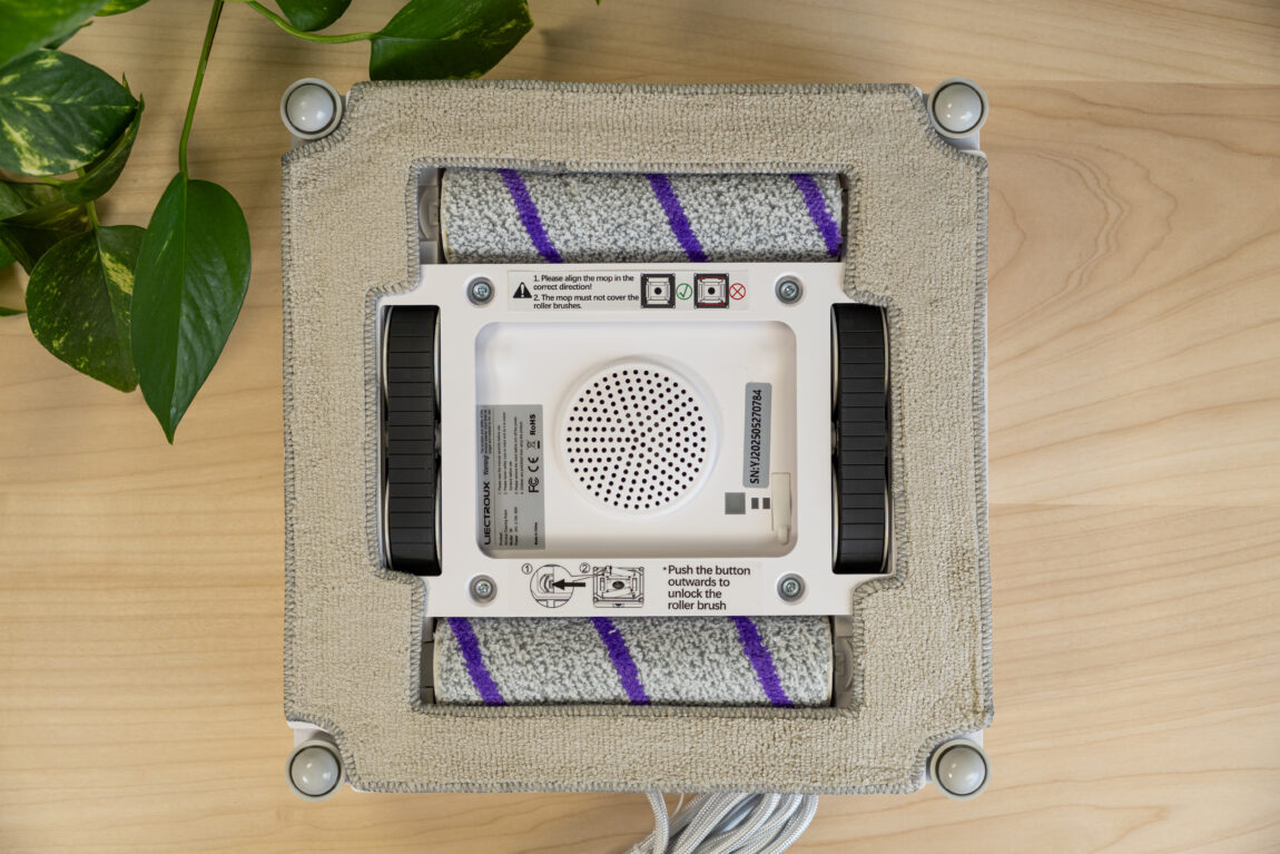 Pats robotas atrodo solidžiai. Plastikas tvirtas, surinkimas geras, viršuje odą primenantis dirželis. Vos apvertus akį patraukia du voleliai. Valymo metu jie turi suktis, tad teoriškai visas valymas turėtų būti gerokai efektyvesnis.