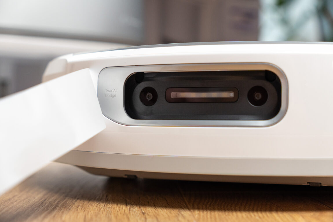 Pats siurblys robotas taip pat pasikeitęs. Viršuje nebeliko išsikišusio LiDAR sensoriaus - jis perkeltas į korpuso galinę dalį (fiksuoja maždaug 180° kampu), todėl Flow dabar telpa po žemesniais baldais. Navigacijai priekyje išliko dvi kameros.