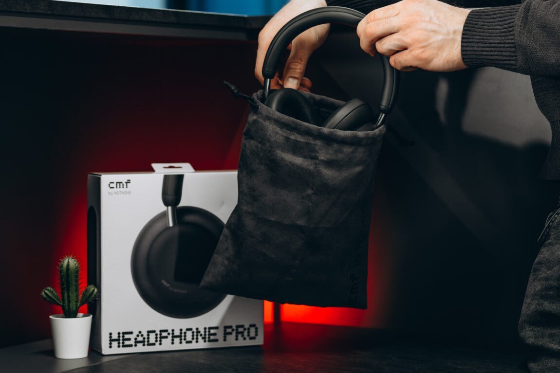 Vos tik atvėrus Nothing CMF Headphone Pro dėžutę į delną įkrito vartotojo instrukcijos knygelė su QR kodu programėlės atsisiuntimui. Toliau seka saugiai įpakuotos ausinės, o šalia jų - apsauginis maišelis ausinėms nešioti. Taip pat šio produkto kūrėjai pridėjo seną, bet gerą AUX 3.5 mm kabelį. Mano dėmesį patraukė tai, jog komplektacijoje krovimo laido neturime. Bet pažvelgus iš kitos pusės - Type C krovimo kabelį turime praktiškai kiekvienas.