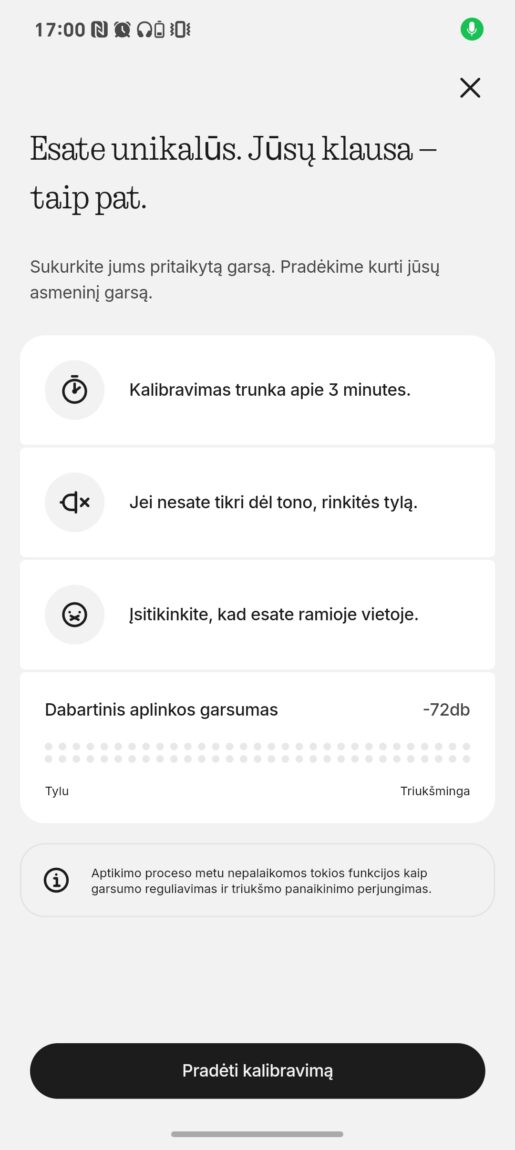 Palyginus su konkurentais, Nothing CMF Headphone Pro tikrai neatsilieka nuo Sony ar Soundcore. Pagalvėlės pilnai apgaubia ausis, todėl net be ANC triukšmo izoliacija gera, o su įjungtu triukšmo slopinimu aplinkos garsai girdisi minimaliai. Skaidrumo režimas veikia puikiai ir natūraliau nei Soundcore. Garsas orientuotas į žemų dažnių pusę, tačiau išlieka subalansuotas ir švarus. Bosas nėra toks „punchy“ kaip konkurentų, bet sodrus ir kokybiškas. Garso pritaikymo galimybės programėlėje ribotos, EQ pasirinkimų mažiau nei pas Sony ar Soundcore.