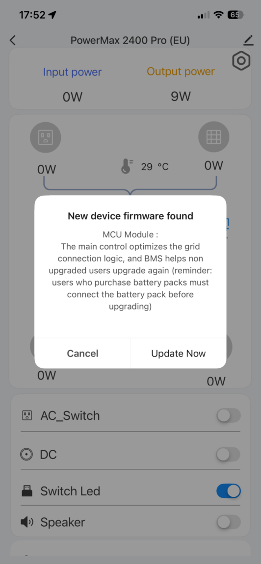 Kaip bebūtų keista, Oscal neturi atskiros savo programėlės ir naudoja bendrą Smart Life platformą. Joje PowerMax 2400 Pro valdymas yra gan elementarus - galima įjungti atskirus modulius (AC, USB ir pan.), stebėti įkrovimo bei iškrovimo informaciją ir atnaujinti programinę įrangą. Perteklinių funkcijų čia nėra, bet baziniam valdymui to pakanka.
