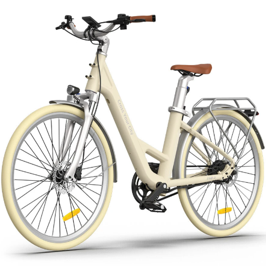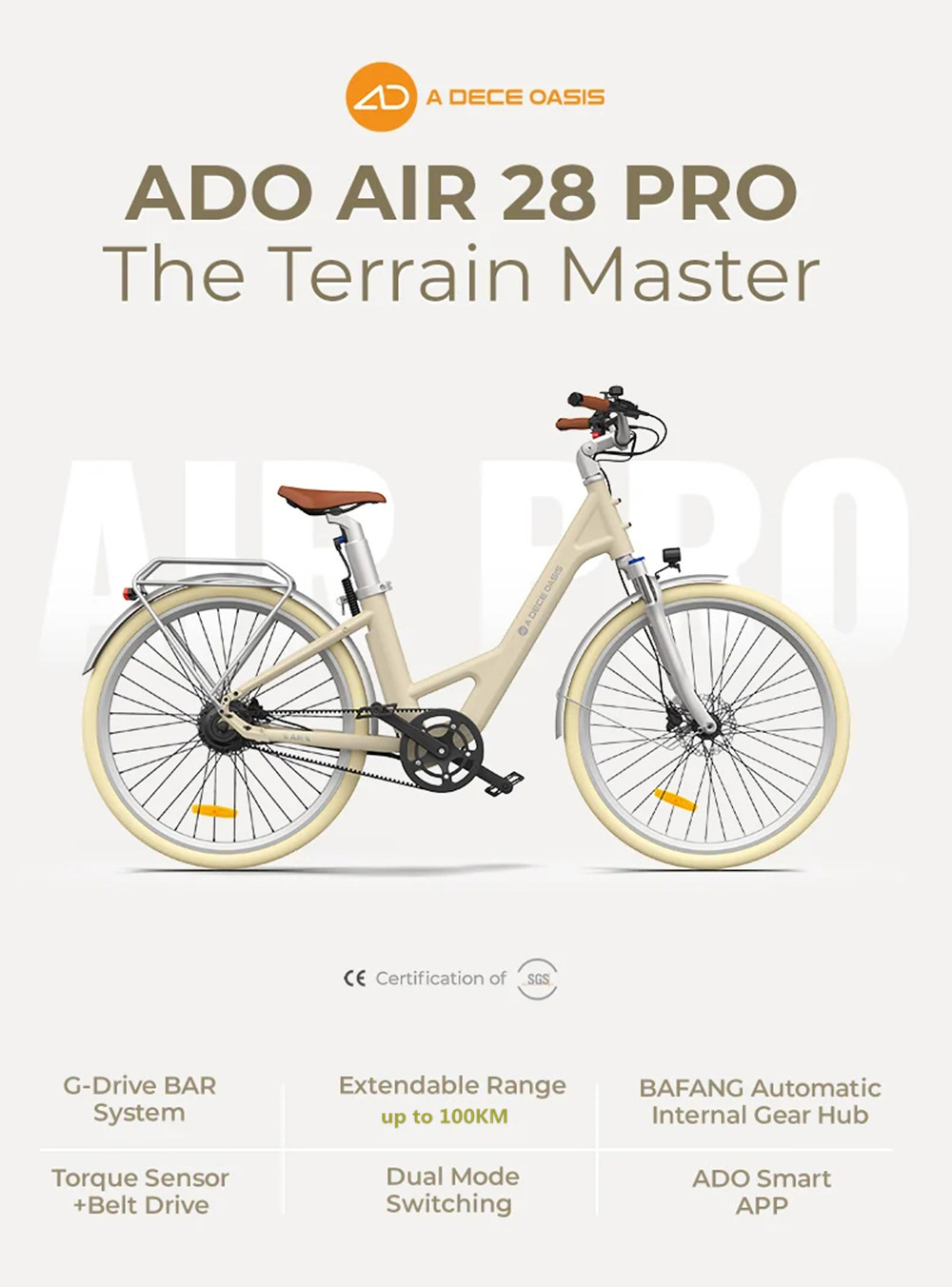 ADO Air 28 Pro is a stylish city e-bike for those who want as little maintenance as possible and as much comfort as possible. The Bafang 250W motor, carbon belt and automatic gears give a very pleasant riding feeling. The bike looks neat, because the battery is integrated, and the control is supplemented with smart modes and an app. This is a model that is best suited for daily city routes and quieter trips.