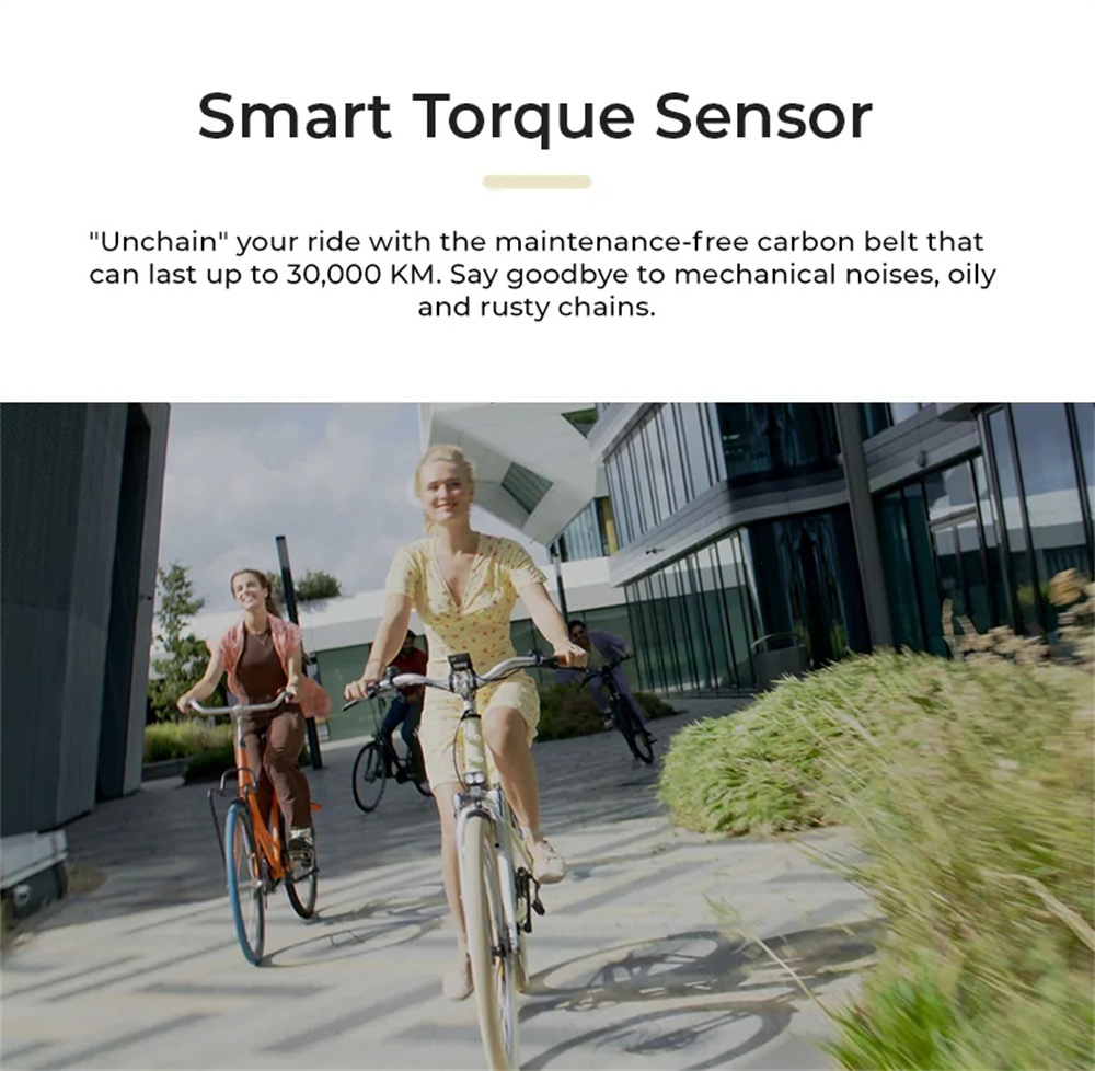 Traction force sensor (torque sensor) measures how hard you pedal and precisely doses the motor assistance accordingly. Pedal lightly – the assistance is gentle, pedal harder – the motor assists more, so starts and climbs feel more natural. This makes the ride less like „on/off“ and more like a regular bike with assistance. This often also uses the battery more efficiently, because the assistance is only provided as much as is actually needed.