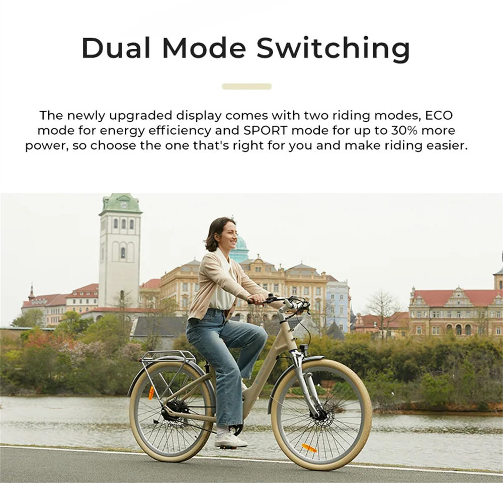 The ADO Air 28 Pro has ECO and SPORT modes so you can quickly adapt to the situation. ECO saves more battery and is suitable for quiet driving in the city or on smoother roads. SPORT provides more active assistance when you want to move faster or have to climb hills more often. You can switch modes easily, so you don't have to "dig" in the settings.