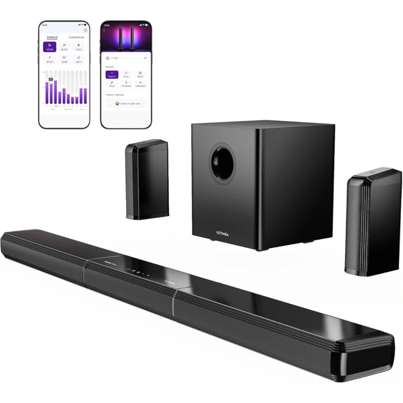 The sound system can be conveniently controlled via the ULTIMEA mobile app. Adjust the volume, change modes, enable Night Mode or control the lighting effects directly from your phone. Simple and fast – everything is in your hands, without additional remotes.