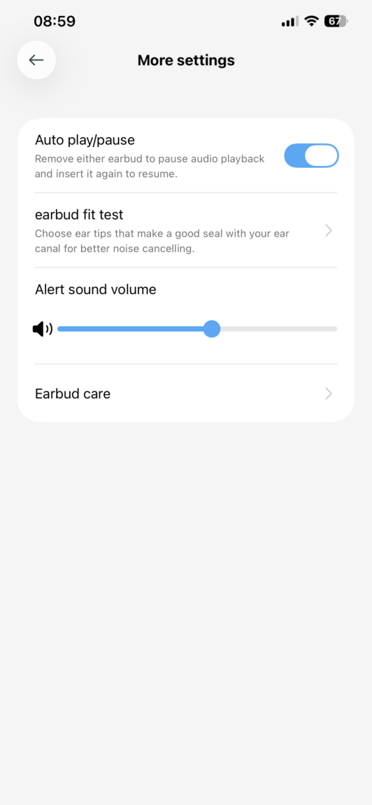 The HeyMelody app is designed to control the headphones. It allows you to adjust the noise cancellation strength, equalizer settings, enable dual device connection, change control gestures, etc. There have been almost no changes since the Buds Pro 3, so you can read more about the app in my in the previous review.
