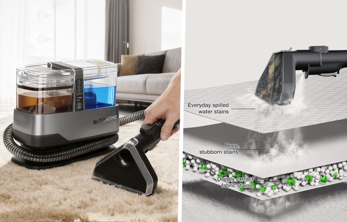 BlitzHome BH-C688C – tai garinis kilimų ir apmušalų valytuvas, skirtas „ištraukti“ dėmes iš audinio, o ne tik paviršiuje jas sušlapinti. Jis tinka kilimams, sofoms, čiužiniams ir automobilio salonui, kai nori greito „prieš / po“ efekto namų sąlygomis. Didelis pliusas – kartu veikia ir karštų garų režimas, kuris padeda higieniškiau sutvarkyti paviršius. Tai ypač aktualu, jei namuose yra vaikų ar augintinių.