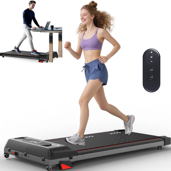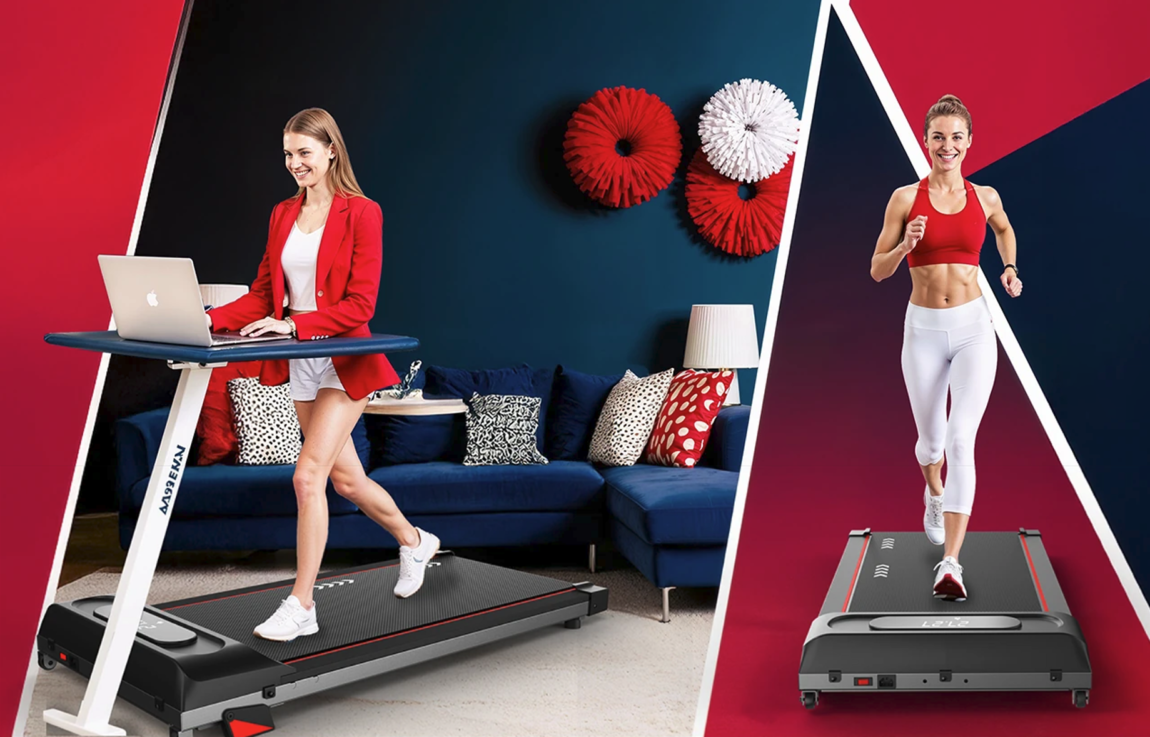 Takelis naudoja 7 sluoksnių neslystantį diržą, kuris geriau sugeria smūgius ir maloniau jaučiasi pėdai. Ėjimo plotas yra 90 × 38,5 cm – pakankamas natūraliam žingsniui, kad nesijaustum „suspaustas“. Tokie matmenys ypač tinka ėjimui po stalu ar kambaryje, kai vietos nėra daug. Jei vaikštai kasdien, komfortas ir stabilumas čia tikrai pasijaučia.