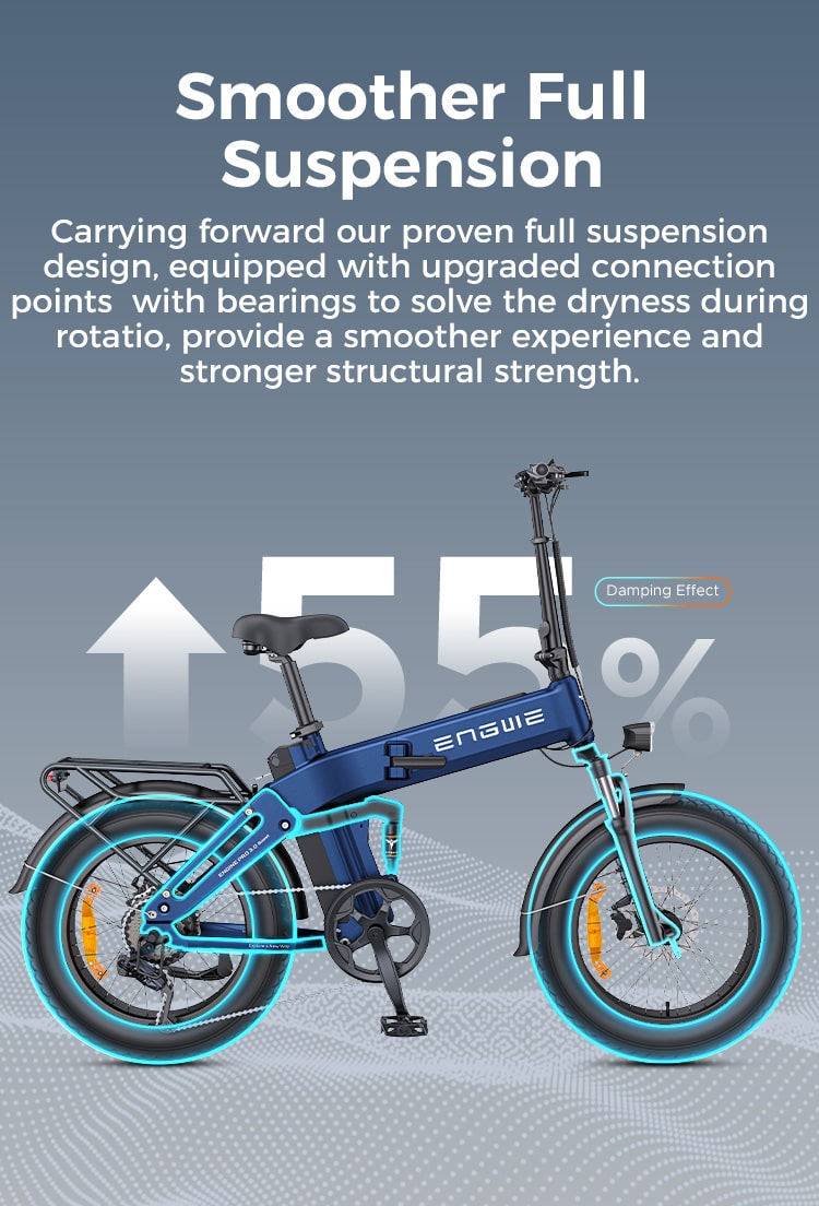 Engine Pro 3.0 Boost turi pilną pakabą su patobulinta galine amortizacija ir standesne konstrukcija. Priekinė šakė ir galinis amortizatorius efektyviau sugeria smūgius, ypač važiuojant miško ar žvyro keliais. Kartu su 20x4.0" colių storomis padangomis užtikrinamas stabilesnis važiavimas ir didesnis komfortas. Palyginus su 2.0 modeliu, pakaba dirba minkščiau ir tyliau.