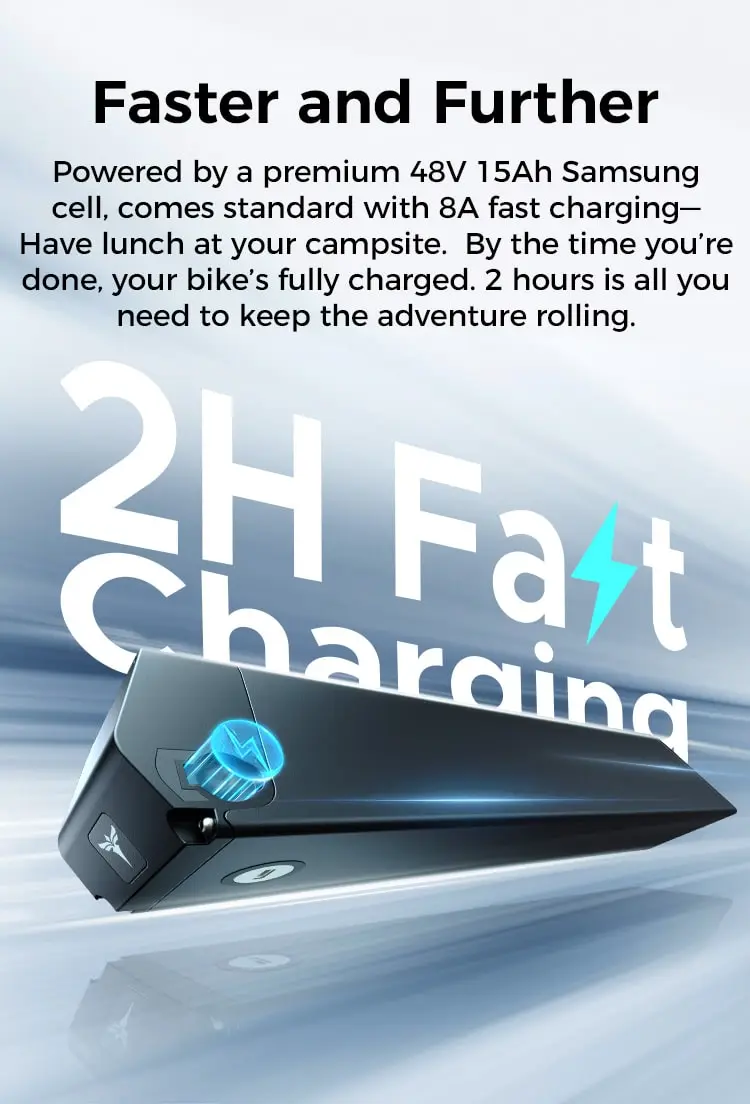 Vienas didžiausių Engine Pro 3.0 Boost pranašumų – itin greitas baterijos įkrovimas. 48V 15Ah (720Wh) baterija su 8A įkrovikliu pilnai įkraunama maždaug per 2 valandas. Tai ženklus skirtumas nuo Engine Pro 2.0, kurio įkrovimas trunka apie 6 valandas. Šis sprendimas labai patogus tiems, kas dviratį naudoja kasdien.