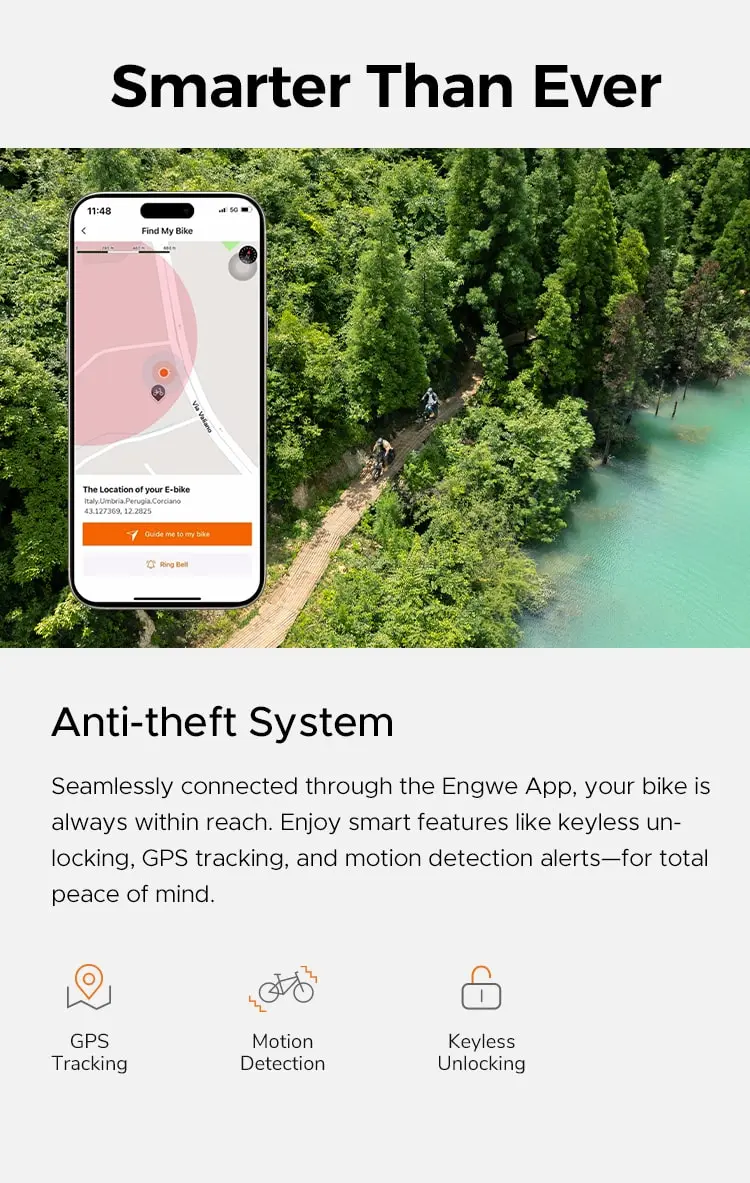 Engine Pro 3.0 Boost turi integruotą GPS modulį, leidžiantį sekti dviračio buvimo vietą telefone. Judesio aptikimo sistema „Motion Detection“ įspėja, jei dviratis pajudinamas, o „Keyless Unlocking“ leidžia atrakinti dviratį be fizinio rakto. Visos šios funkcijos valdomos per ENGWE programėlę. Tai didelis saugumo šuolis lyginant su 2.0 modeliu.