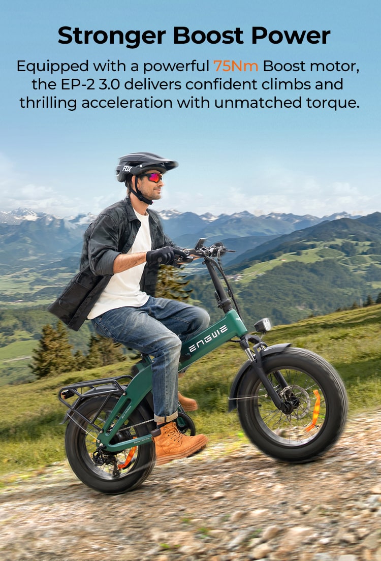 ENGWE EP-2 3.0 Boost yra universalus elektrinis dviratis, pritaikytas tiek kasdienėms miesto kelionėms, tiek važiavimui sudėtingesnėmis vietovėmis. Integruota Boost Power funkcija užtikrina iki 75Nm sukimo momentą, kuris padeda lengvai įveikti statesnes įkalnes ir kalnuotus maršrutus. Važiavimas išlieka stabilus ir sklandus net esant didesnei apkrovai.