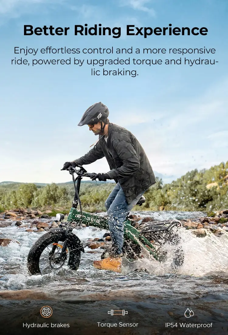 Dviratis aprūpintas torque sensoriumi, kuris tiksliai reaguoja į minimo jėgą ir automatiškai pritaiko variklio pagalbą. Tai sukuria natūralų važiavimo pojūtį ir leidžia efektyviau naudoti energiją. Hidrauliniai diskiniai stabdžiai su 180mm diskais priekyje ir gale užtikrina patikimą stabdymą. IP54 atsparumo klasė leidžia saugiai važiuoti lietingomis ar dulkėtomis sąlygomis.