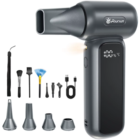 Foursun TF100 – kompaktiškas mini oro pūstuvas, skirtas greitam dulkių, smėlio ar lapų „nupūtimui“ be laidų. Viduje dirba bešepetėlis variklis iki 150000 RPM, todėl pūtimas jaučiasi stipriai net iš mažo korpuso. Maksimalus oro greitis siekia iki 50 m/s, tad jis tinka ne tik namams, bet ir automobiliui ar stovyklavimui.