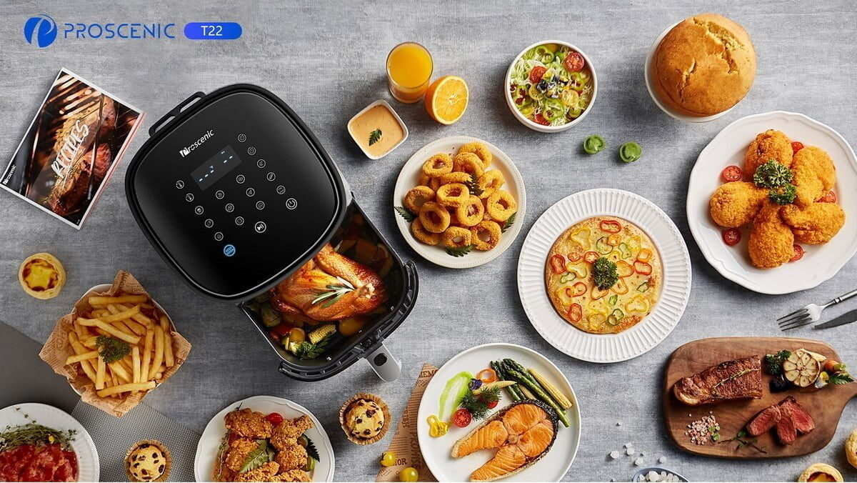 Proscenic T22 gruzdintuvėje integruota net 11 programų įvairiems patiekalams, tokiems kaip fri bulvytės, vištiena, kepsniai, daržovės ar pica. Papildomai yra „Preheat“ funkcija, kuri iš anksto įkaitina įrenginį tolygiam kepimui, bei „Keep Warm“, leidžianti maistą išlaikyti šiltą iki patiekimo momento.