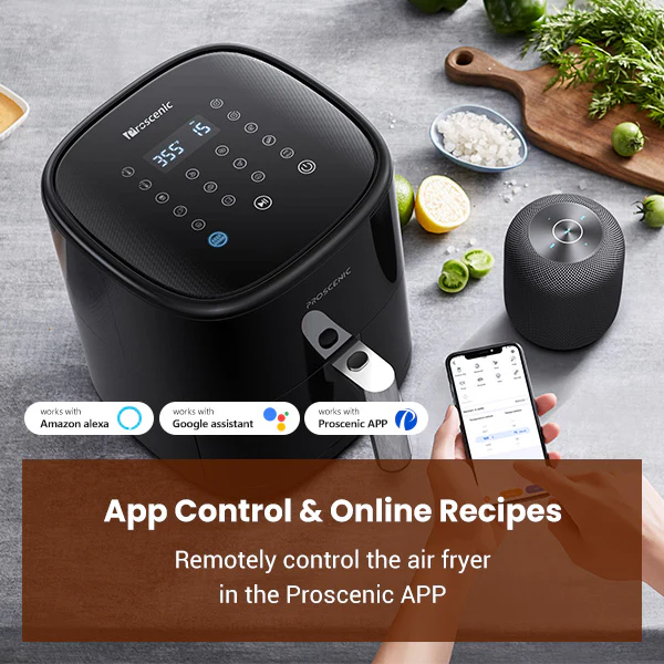 Valdymą dar labiau palengvina speciali programėlė, kurioje galima reguliuoti laiką, temperatūrą, pasirinkti programas ar aktyvuoti papildomas funkcijas. Programėlėje taip pat pateikiama daugiau nei 100 receptų, kuriuos lengva pritaikyti kasdieniams gaminimo poreikiams. Įrenginys suderinamas ir su balso asistentais, tokiais kaip „Alexa“ ar „Google Assistant“.