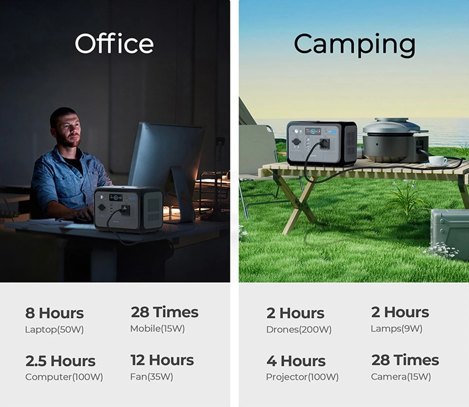 Biure Oukitel P800 gali maitinti nešiojamus kompiuterius, telefonus, maršrutizatorius ar kitą smulkesnę elektroniką, kai svarbus darbo tęstinumas. Stovyklaujant ji naudinga apšvietimui, įkrovimui, smulkiems prietaisams ar kitai įrangai, kuriai reikia stabilaus maitinimo.