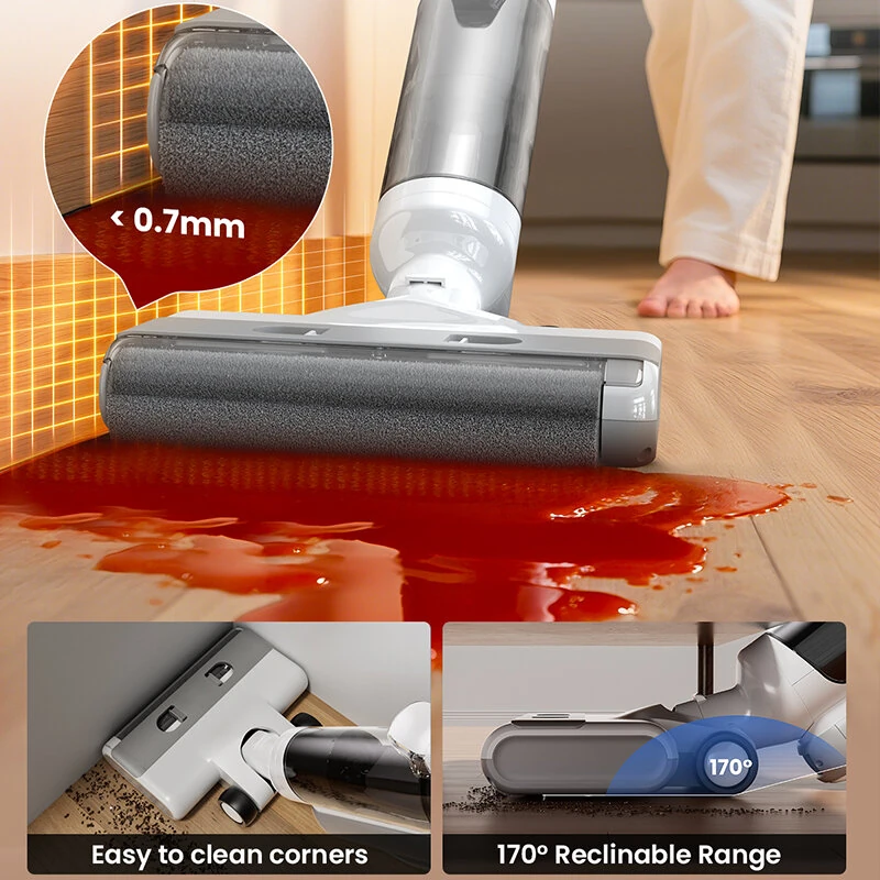 Proscenic F10 Ultra pritaikytas valymui labai arti kraštų, o gamintojo aprašyme šiam modeliui nurodomas iki 0.7 mm priėjimas prie sienos. Tai padeda geriau pasiekti vietas palei grindjuostes ir sumažina poreikį papildomai valyti kraštus rankiniu būdu. Taip pat modelis akcentuoja 170° palenkimo dizainą, todėl patogiau pasiekiamos žemesnės vietos po baldais.