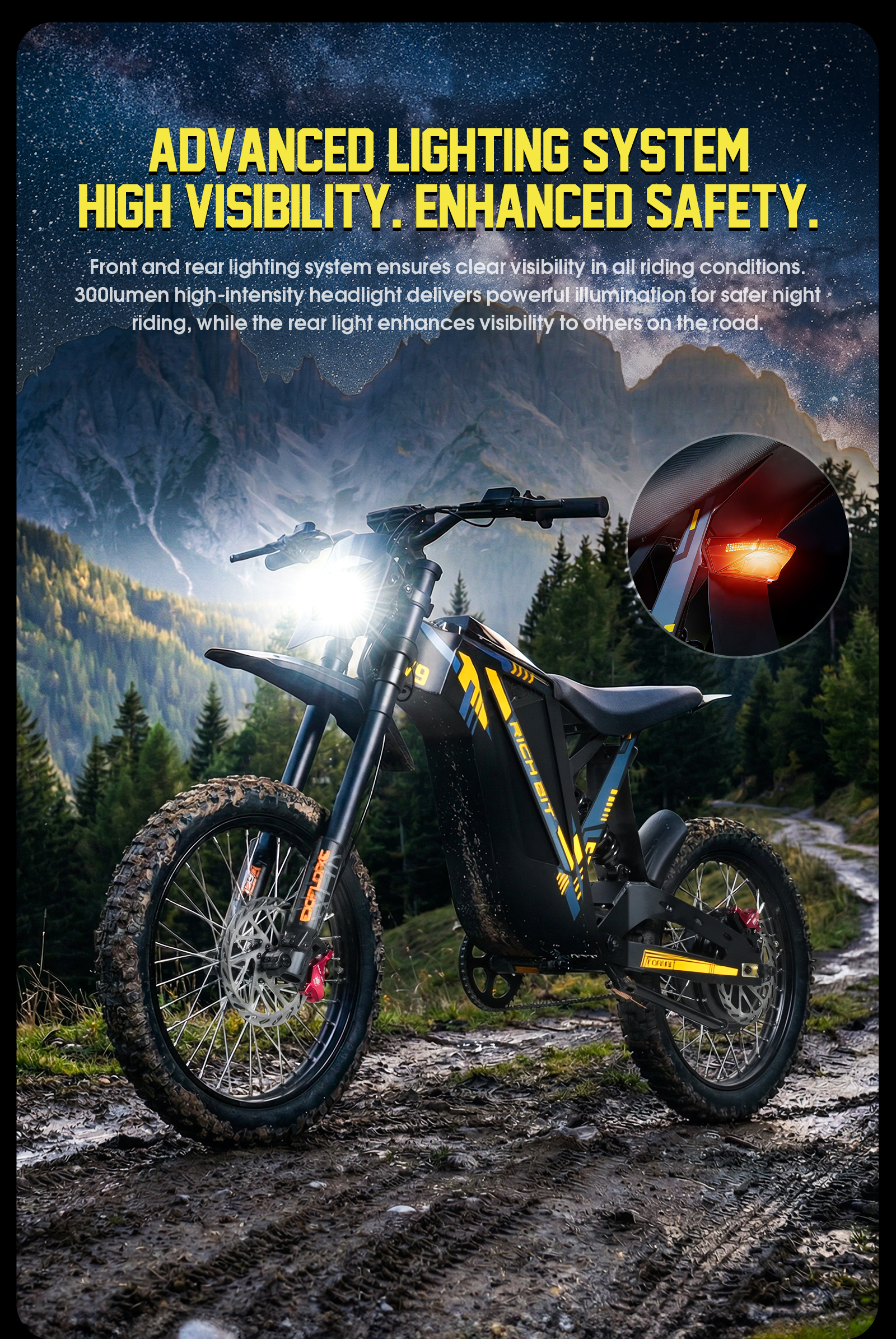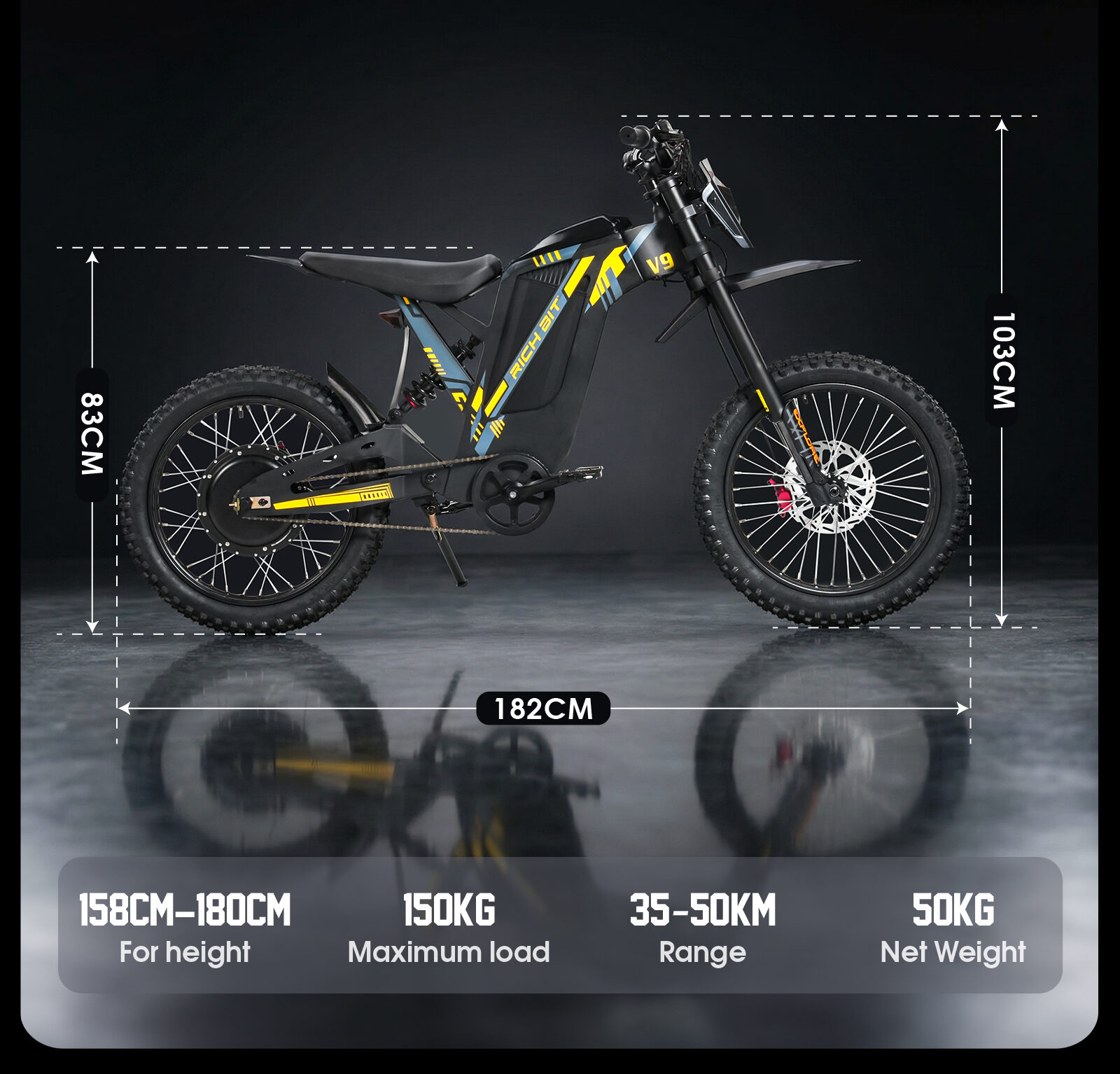 RICH BIT V9 Ultra yra elektrinis mini motociklas, skirtas laisvalaikiui, bekelės trasoms ir smagesniam pasivažinėjimui ne tik lygiu asfaltu. Jis išsiskiria 1500 W varikliu, pilna pakaba, 48V 20Ah baterija ir iki ~ 60 km/h maksimaliu greičiu. Tai modelis tiems, kas ieško ne ramaus miesto e-bike, o gerokai agresyvesnio ir tvirtesnio varianto.