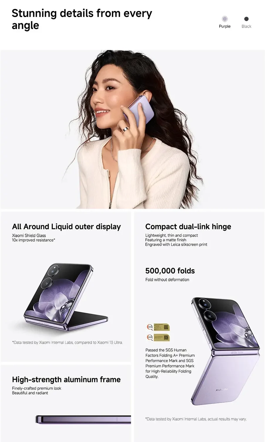 MIX Flip orientuotas į „premium“ surinkimą: tvirtas rėmas ir tvarkingas vyrio darbas, kad telefonas stabiliai atsidarytų ir užsidarytų kasdien. Vidinį ekraną saugo UTG stiklas, o išorinį dengia Xiaomi Shield Glass, todėl jis atsparesnis kasdieniams įbrėžimams. Kaip ir dauguma flip tipo telefonų, jis labiau skirtas realiam kasdieniam naudojimui, bet su logiška priežiūra.