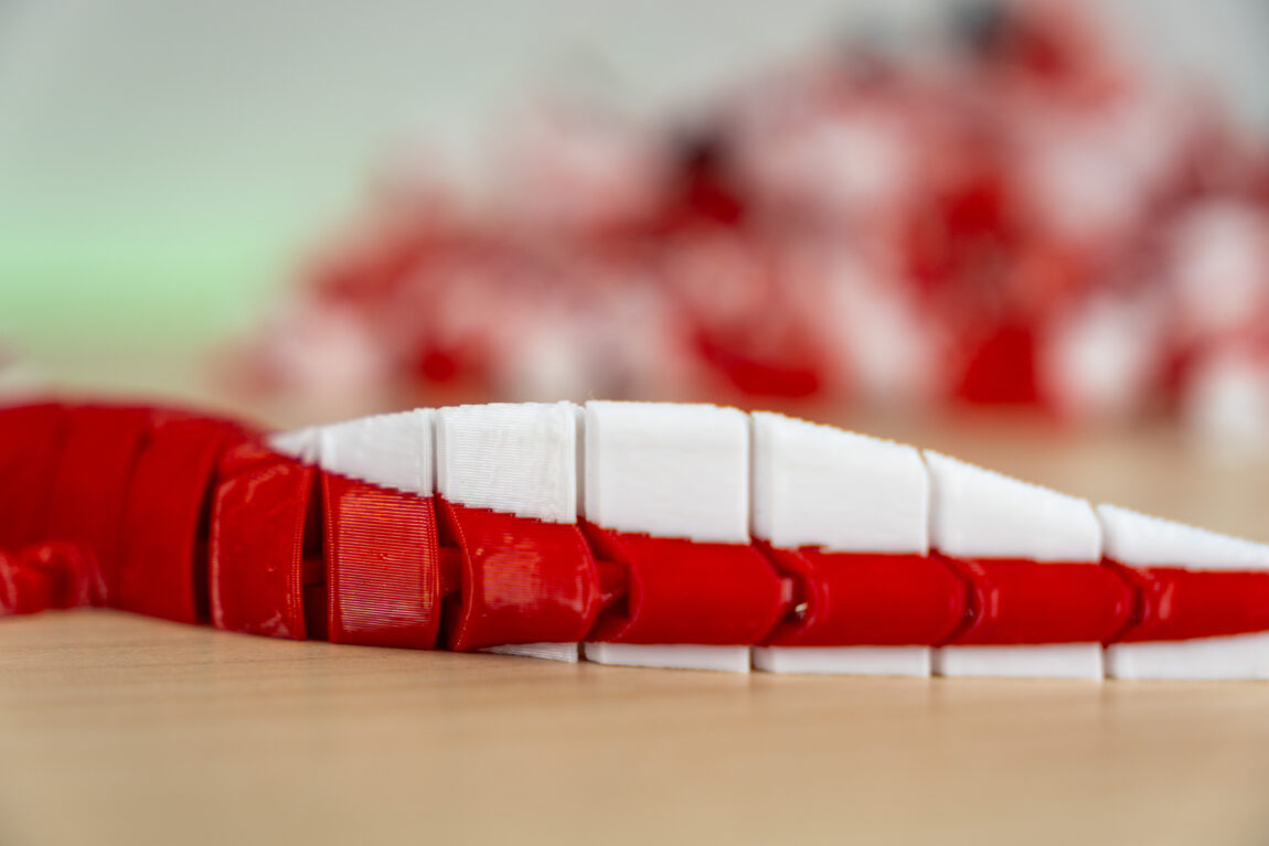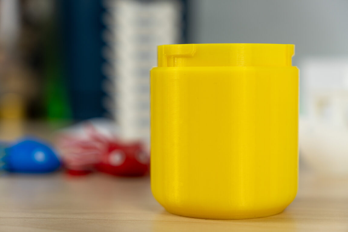 При смене цвета необходимо удалить остатки старого цвета из печатающей головки, выдавить новый цвет, а рядом должна быть установлена башня для очистки. Хотя количество отходов можно контролировать, это неизбежно, и пластиковый мусор образуется в больших количествах. Например, эта модель весом 17 г произвела целых 117 г отходов.
