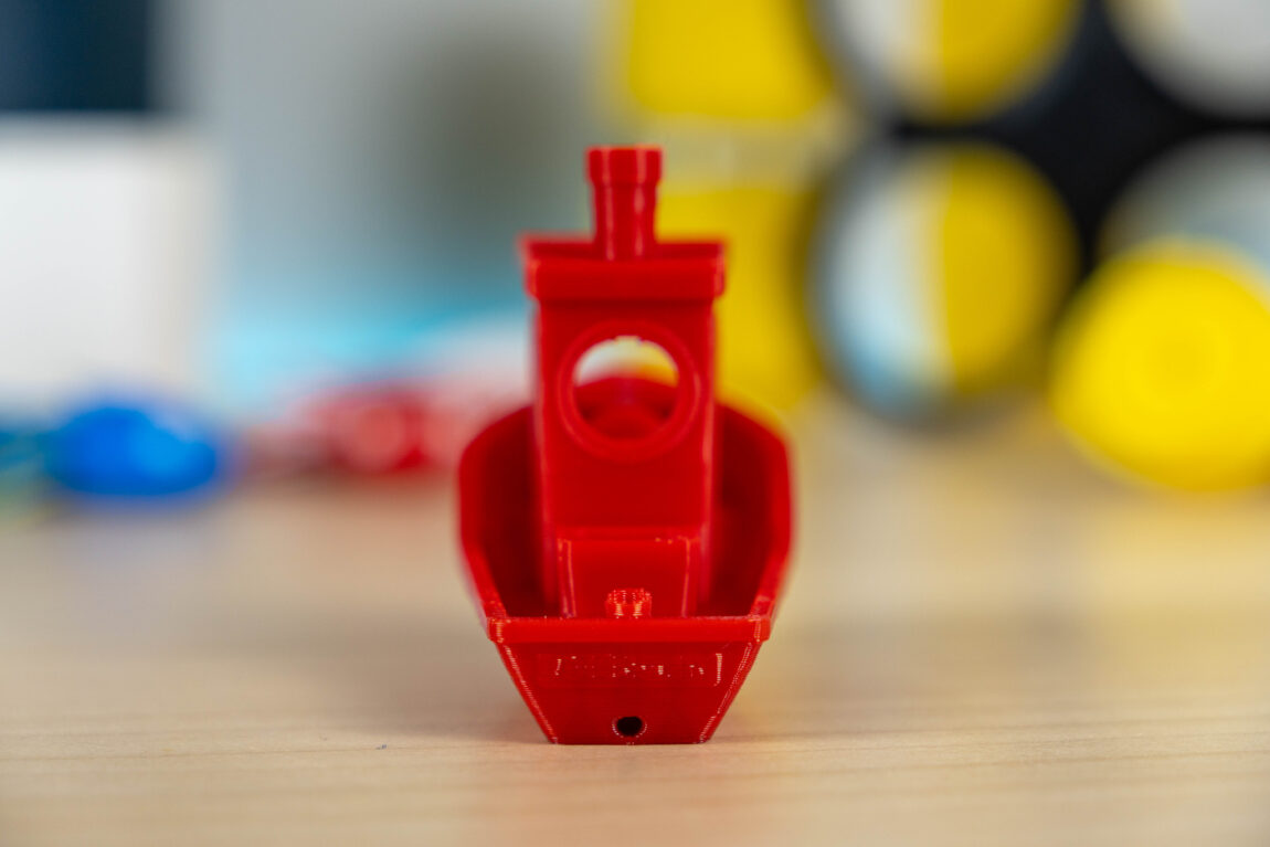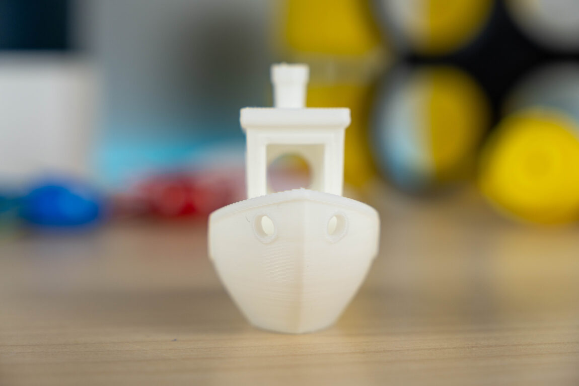 Первая модель, конечно же, Бенчи. Это, вероятно, стандартный тест для 3D-принтеров, демонстрирующий возможности принтера. Версия из PLA с калибровкой была напечатана за 32 мин 51 с, из PETG – за 51 мин 25 с. Результаты хорошие: линии четкие, ничего не отвалилось, лишь несколько нитей в модели из PLA имеют ворсинки.