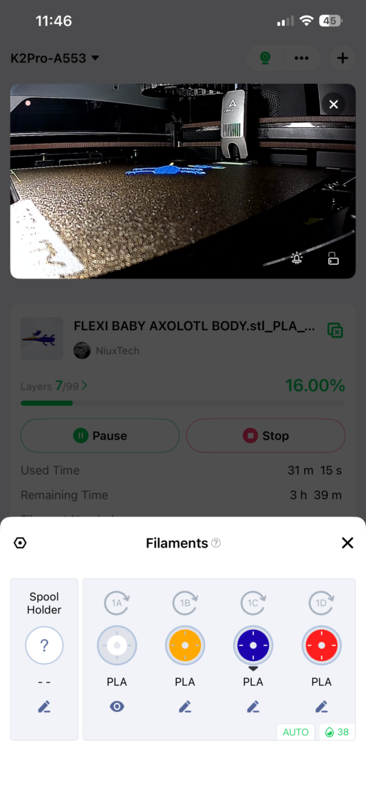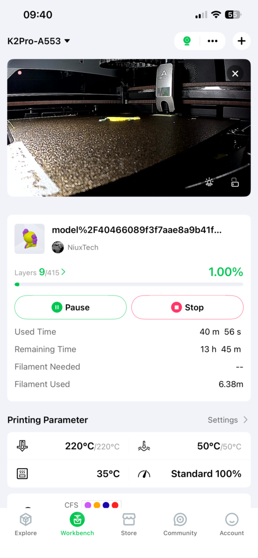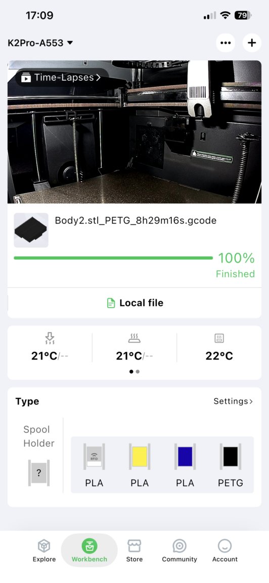 На момент написания этого обзора время печати тестируемого K2 Pro достигло 3 дня 6 часов 41 минуты. За это время мне удалось напечатать более одной модели, и возникло лишь несколько ошибок. Несколько неровностей на большой плоскости, одна модель, напечатанная с использованием Silk PLA (последний известен своими проблемами), была повреждена.