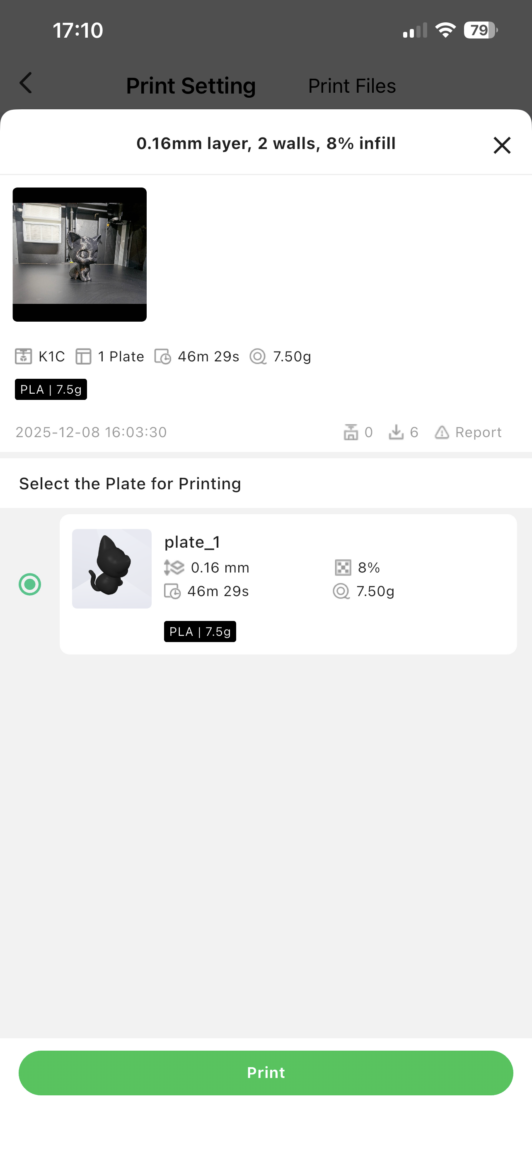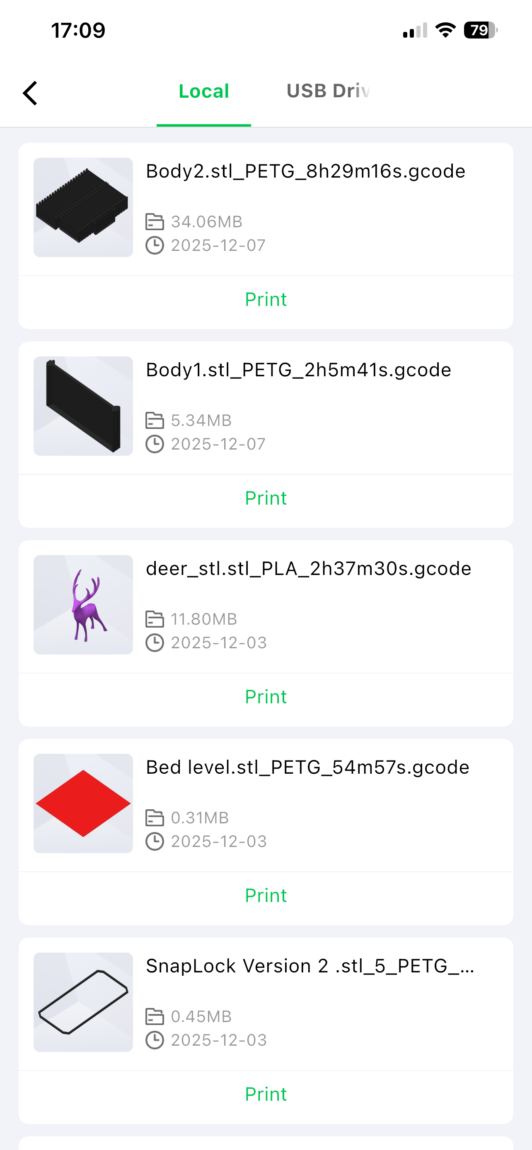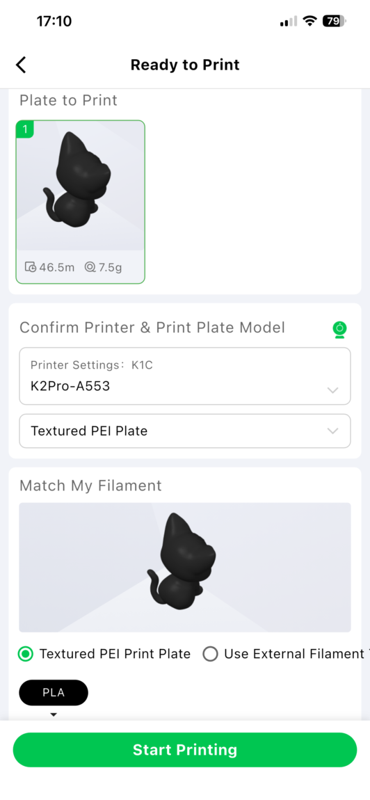 Функция облачного хранения позволяет отправлять модели непосредственно на принтер и начинать печать. Если вы используете файл не с этой страницы, вы можете „вырезать” модель прямо в браузере или в приложении на телефоне (хотя и с ограничениями). Кроме того, благодаря облаку вы можете напрямую управлять самим принтером и отслеживать происходящее через камеру.